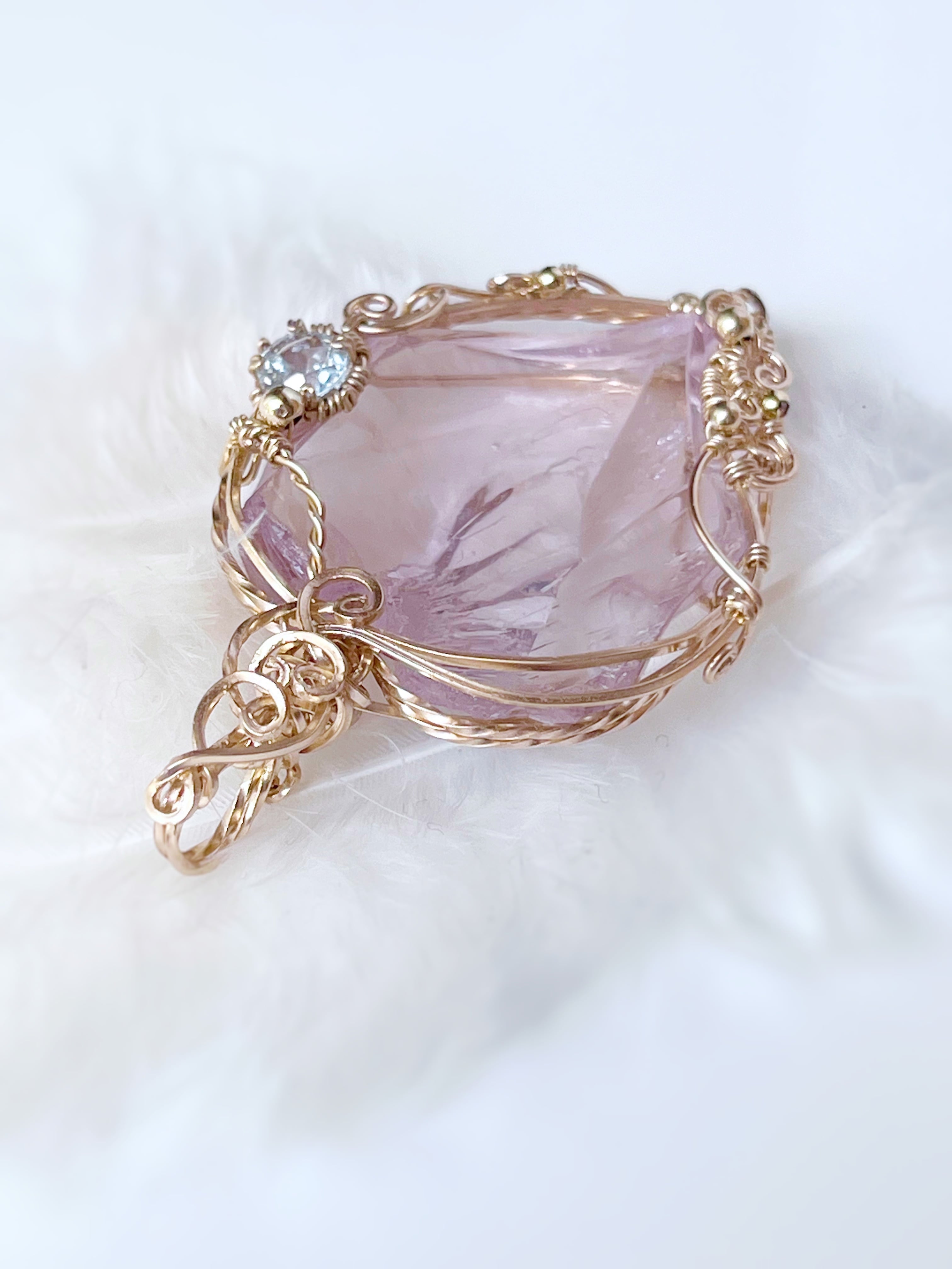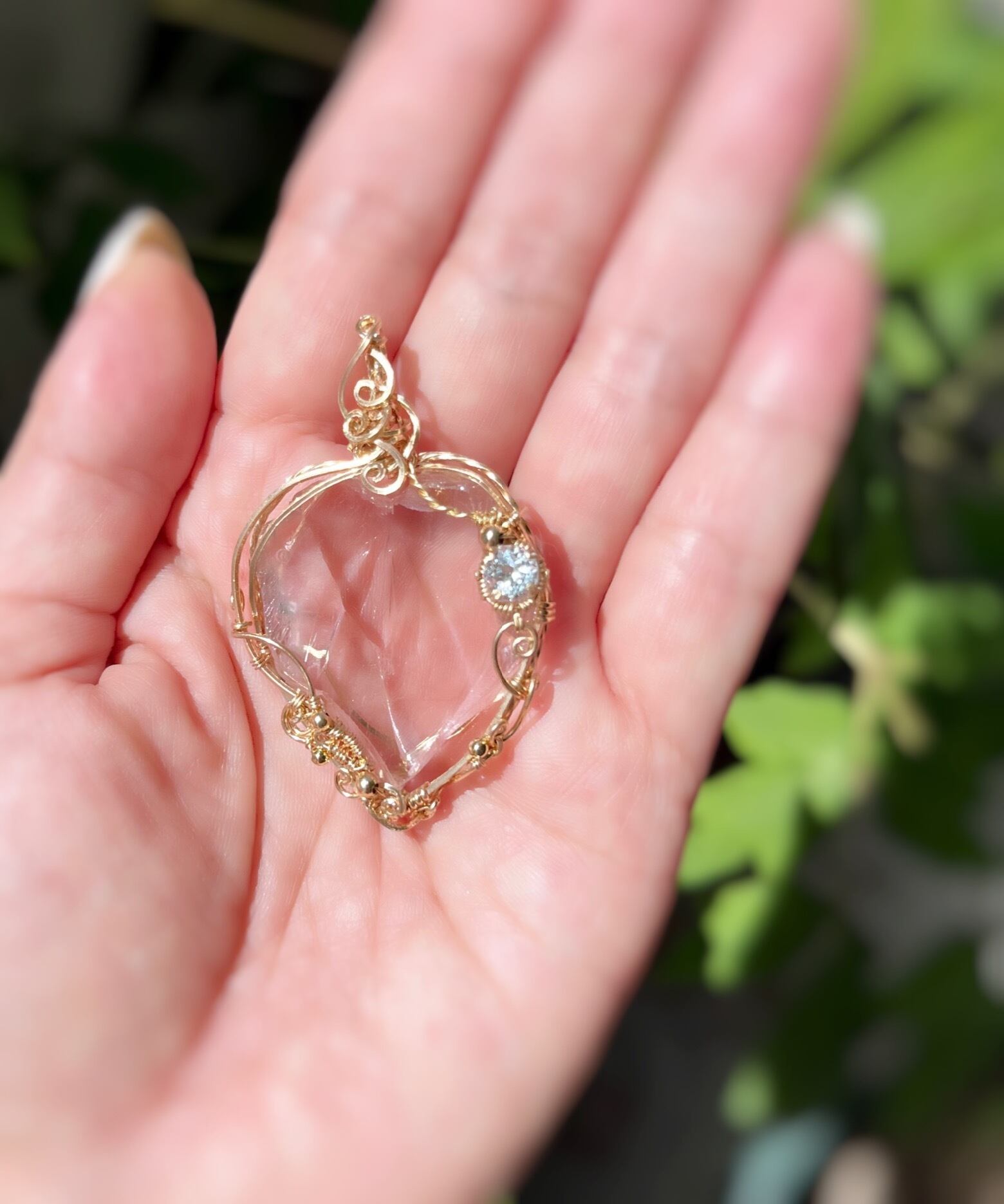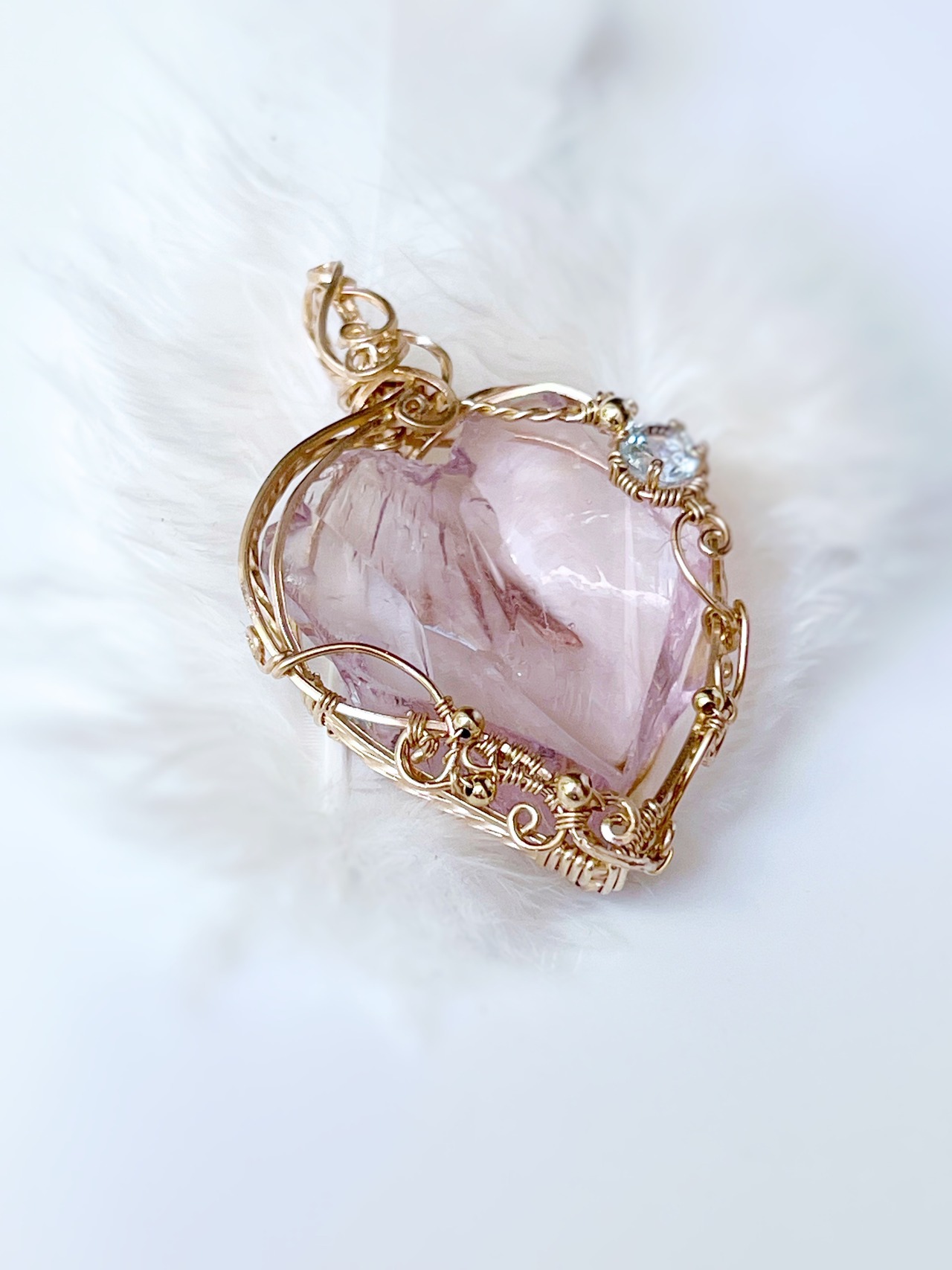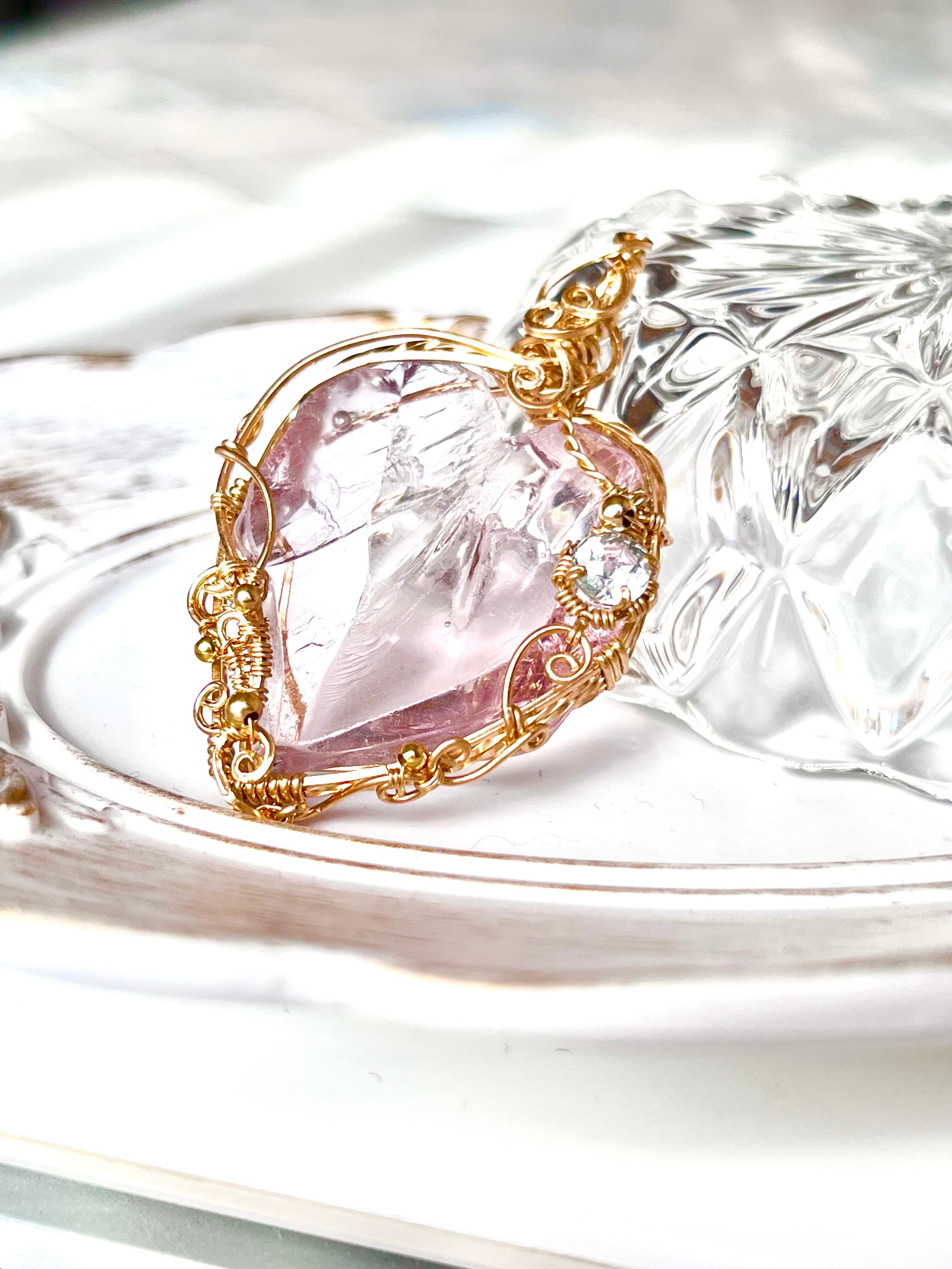 アンダラクリスタル:ハートオブゴットウィズインピンクペンダントトップ 14kgf