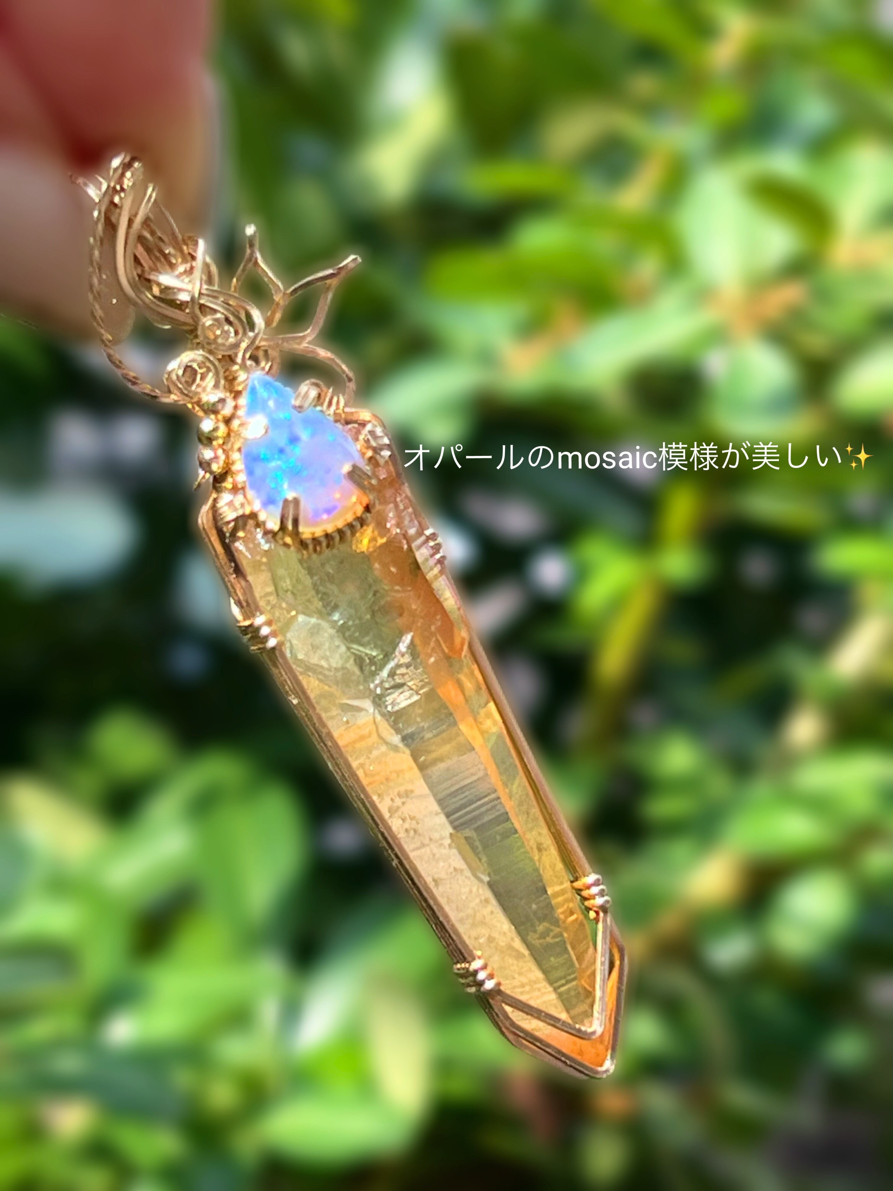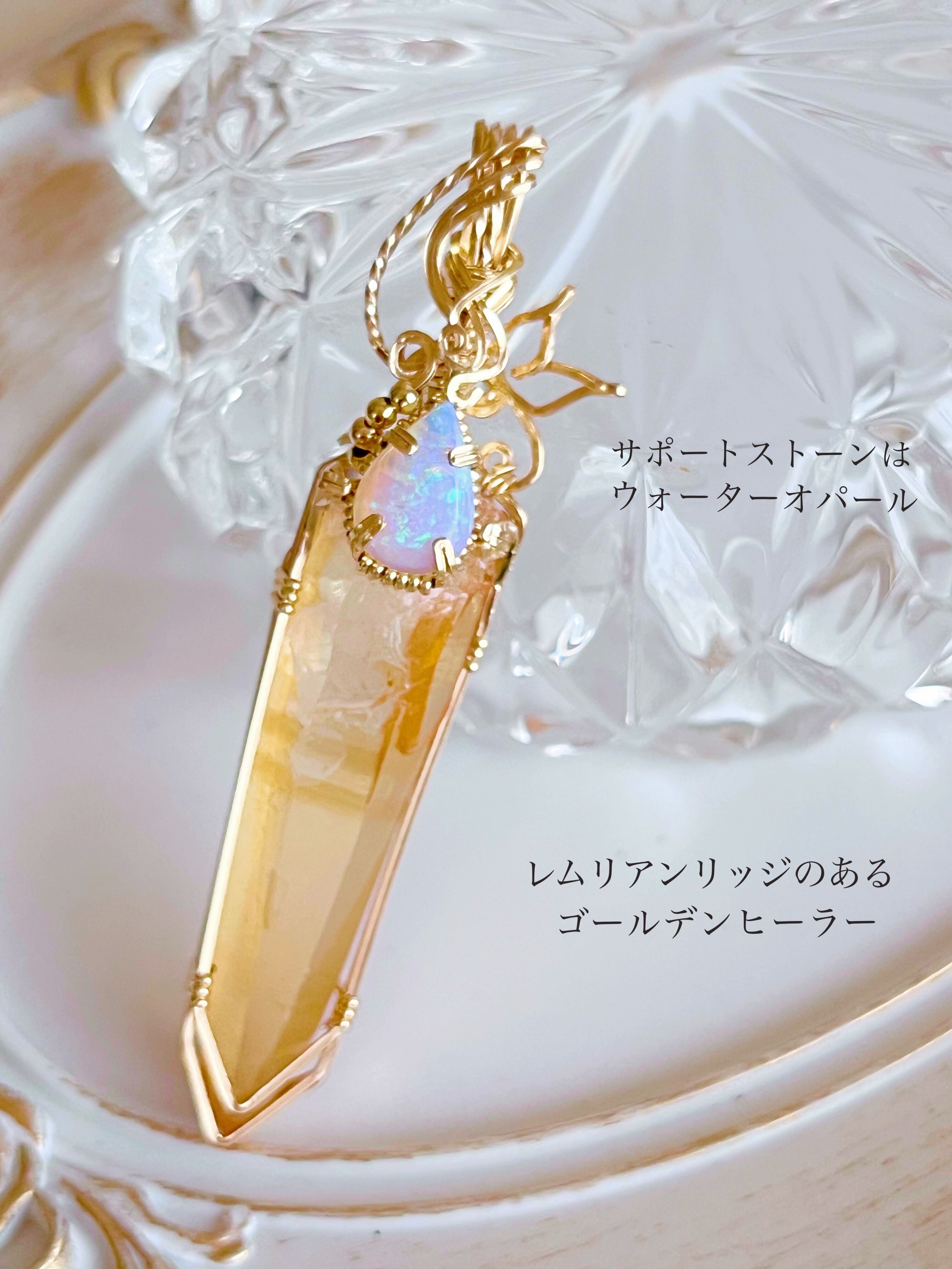 レムリアンシードゴールデンヒーラー&ウォーターオパールペンダントトップ 14kgf