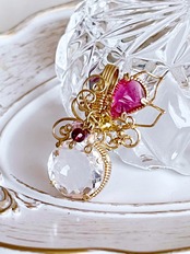 アンダラクリスタル:希少♡ラズベリー&カットクリスタルペンダント 14kgf