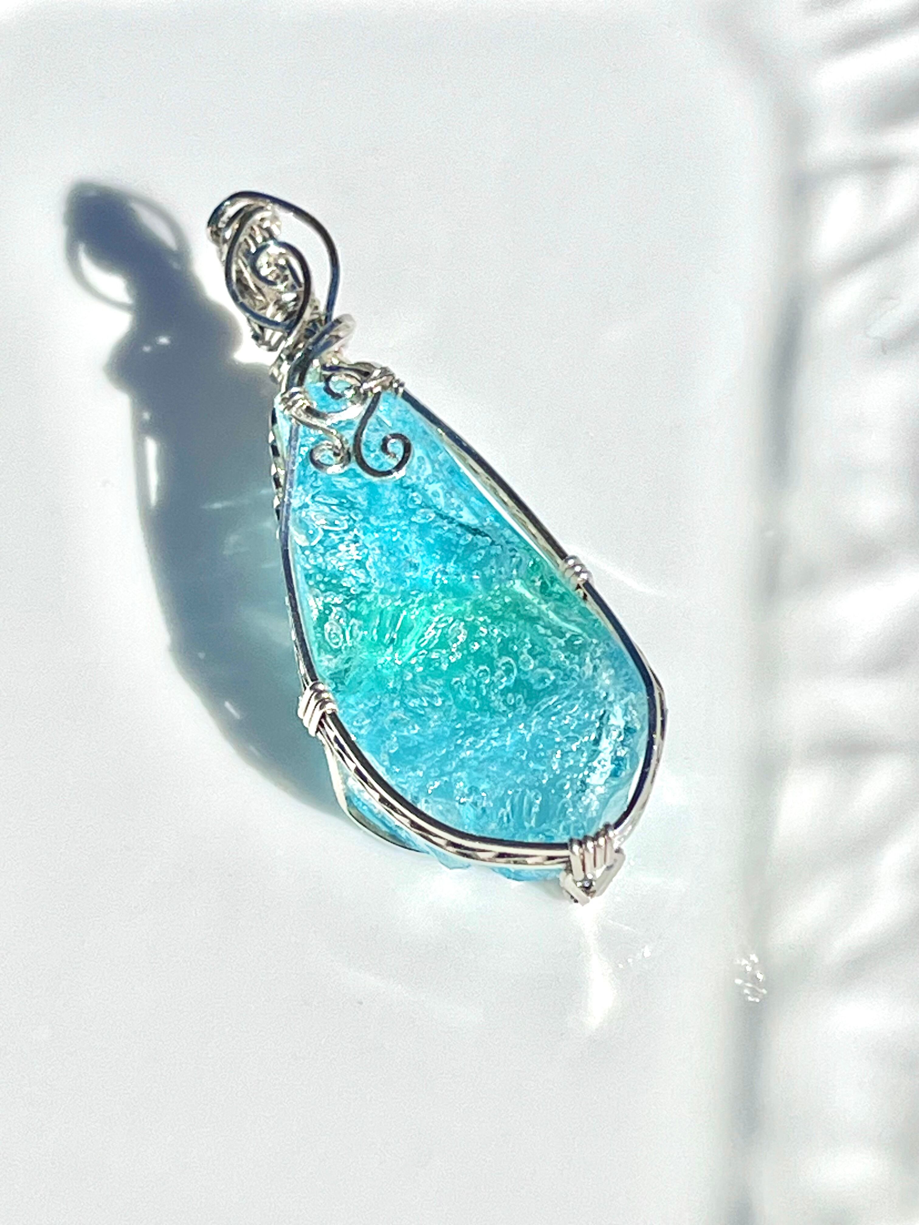 こちらはライトブルーと中央に少しライトグリーンが入る、グラデーションのペンダントトップです