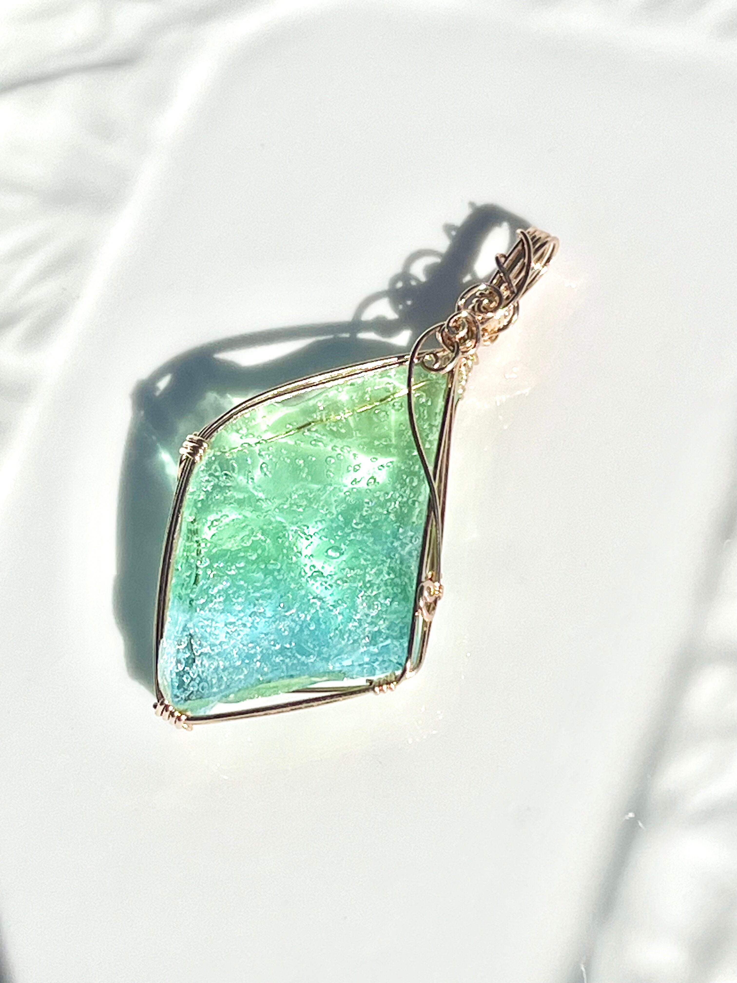 こちらはライトグリーンが多くを占め、ライトブルーとのグラデーションのペンダントトップです