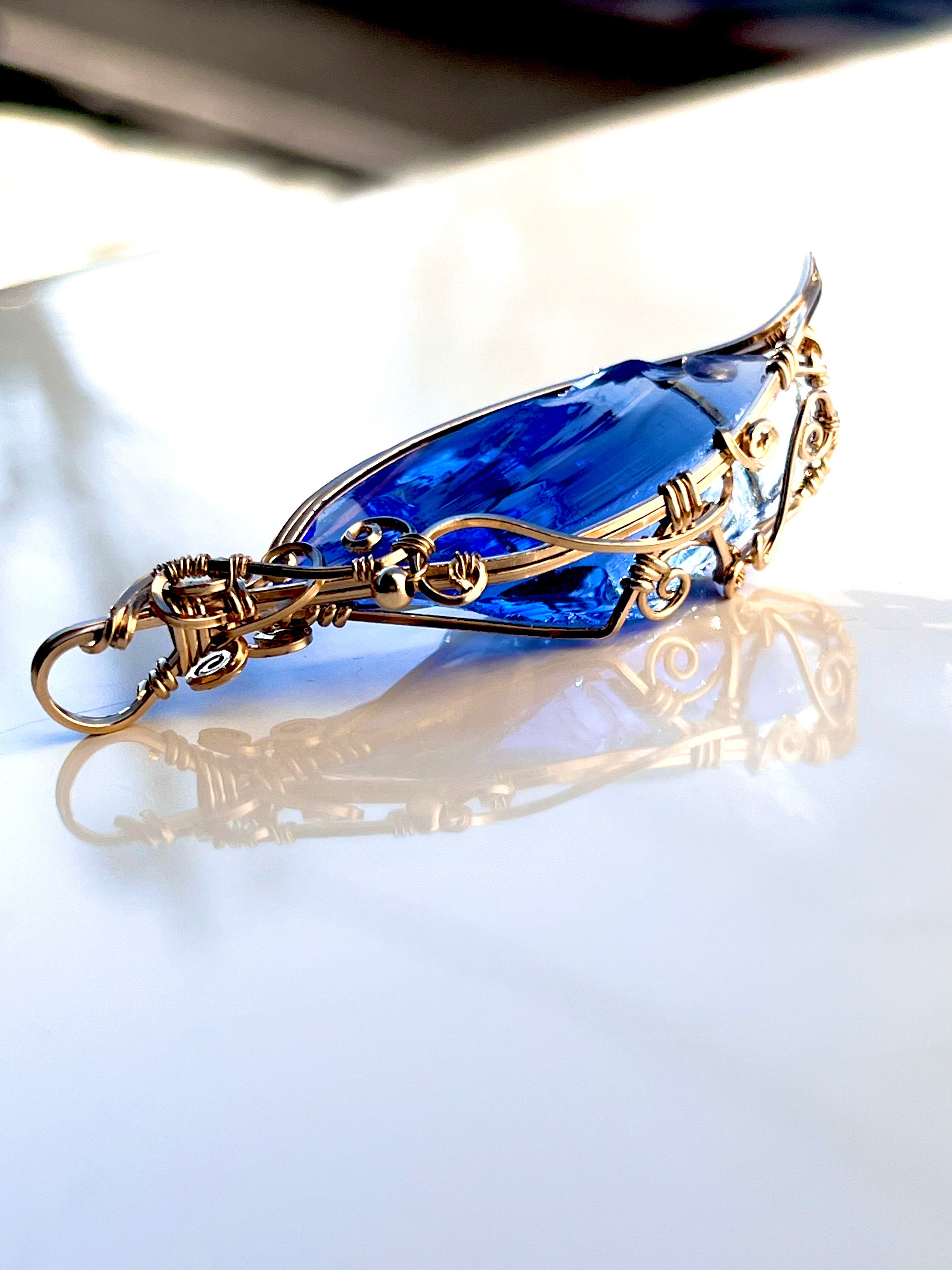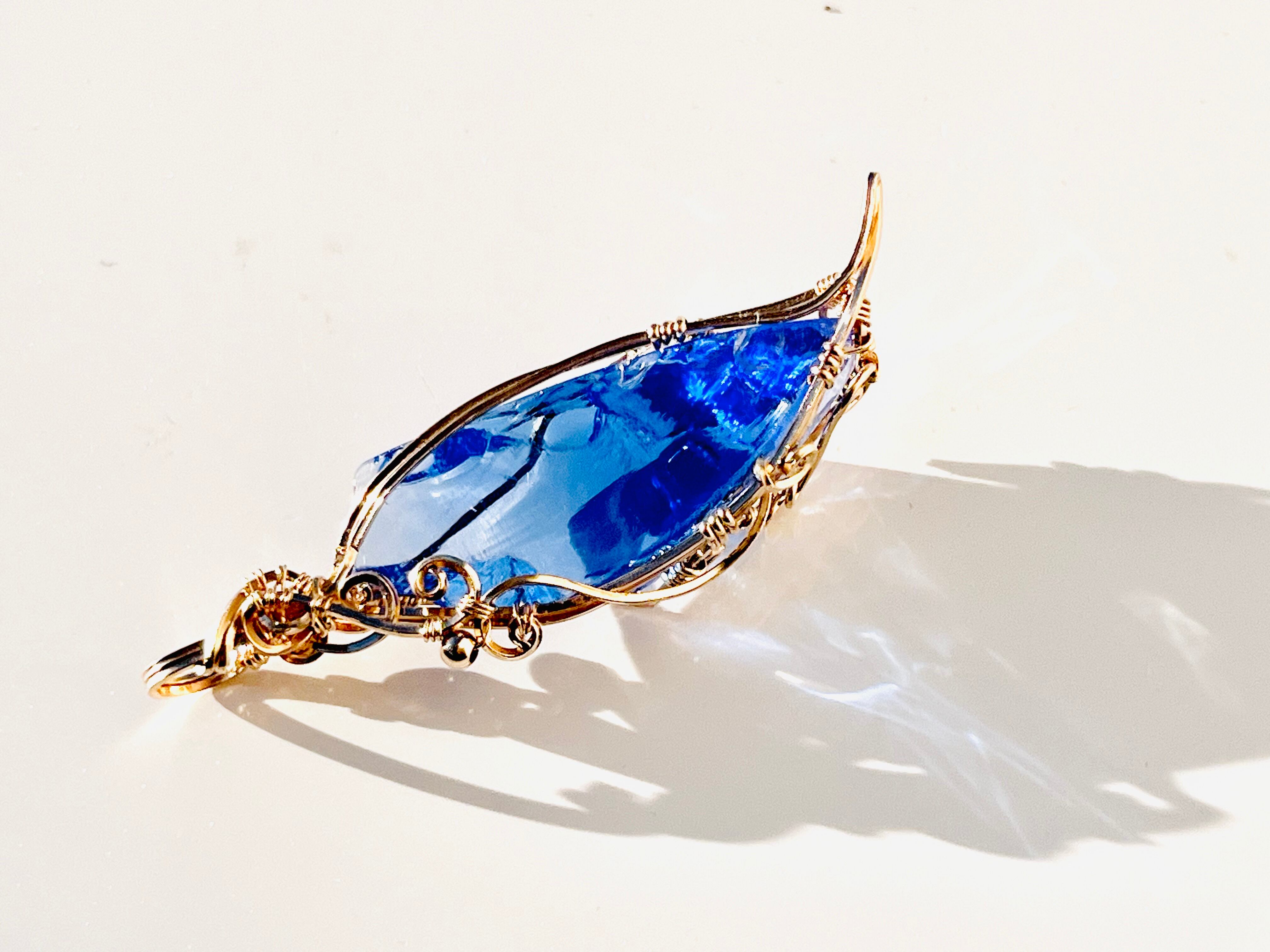 青く澄んだ透明感が特徴のアンダラクリスタルのセレスチャルサファイアペンダントトップです。