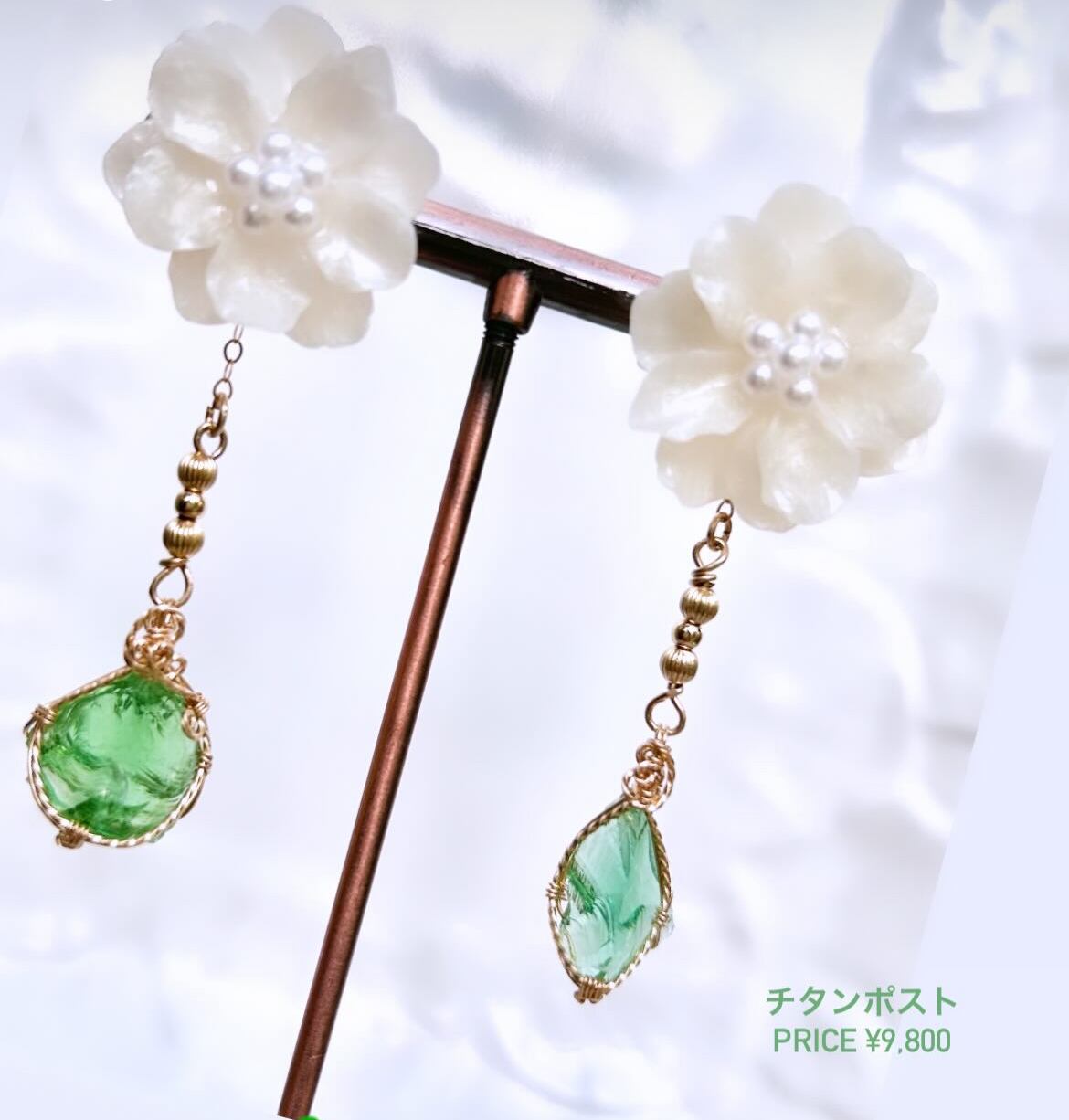 ライトグリーンの輝きが、お顔周りをより明るくし美しく輝かせてくれるとおもいます