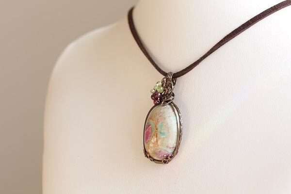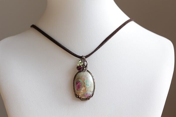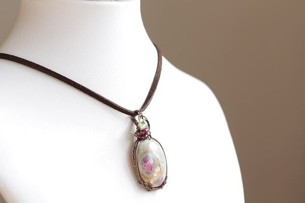 緑と赤紫が混ざる2つの石が組み合わさった不思議な色合いのこの石は