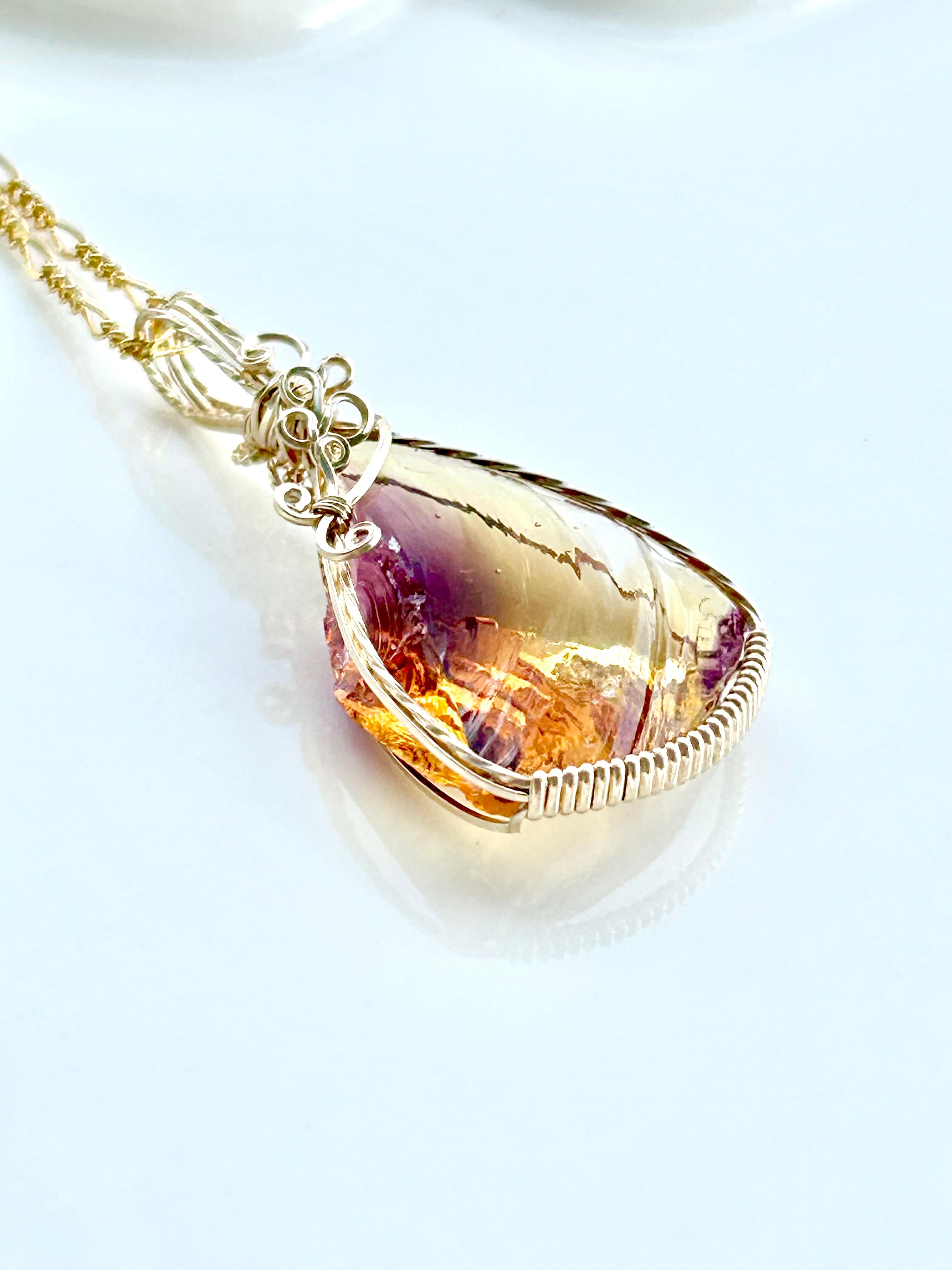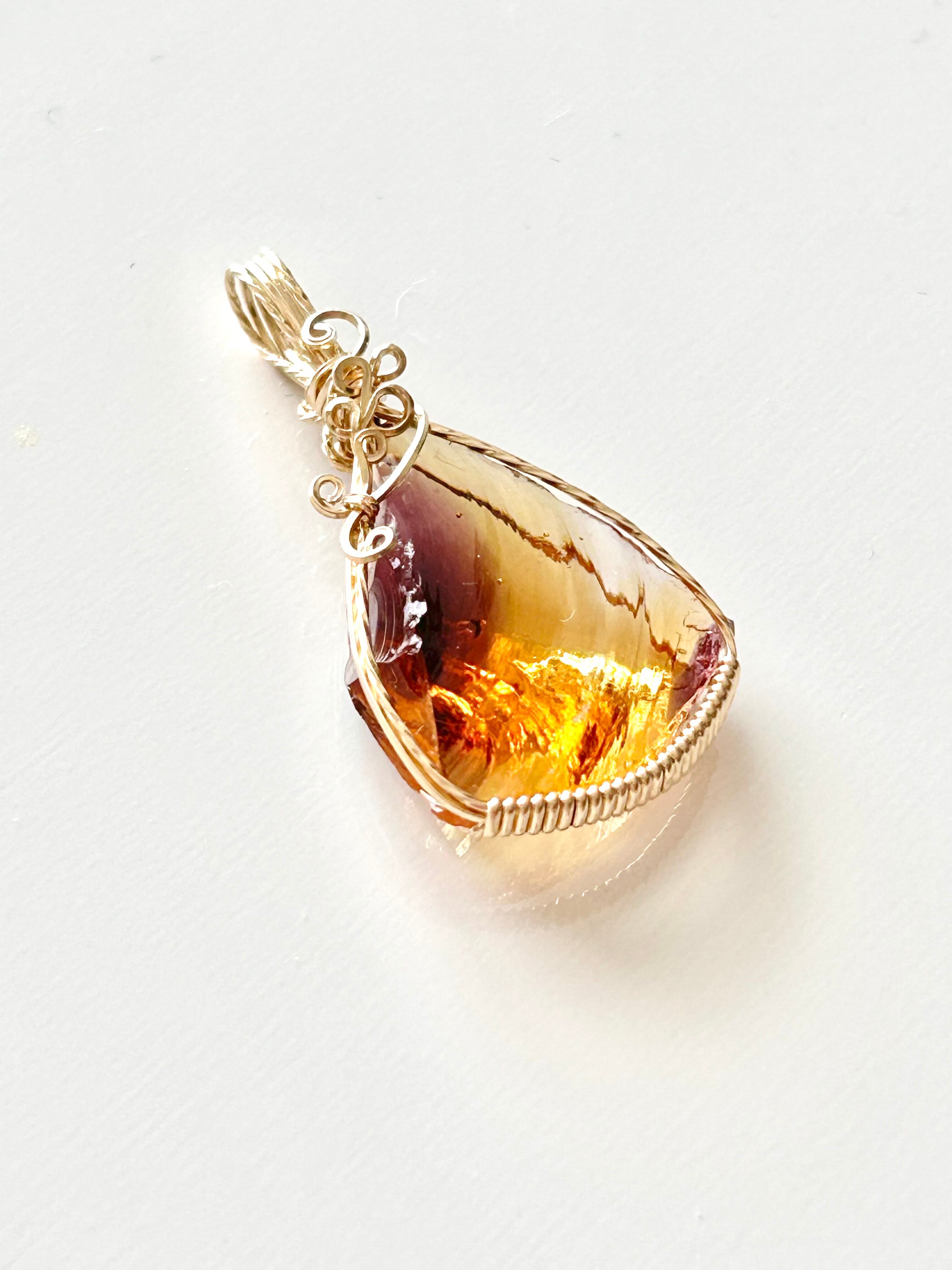アンダラクリスタル:バイオレットゾブリンアメジスト&ダイナミックヘリオドールペンダントトップ 14kgf