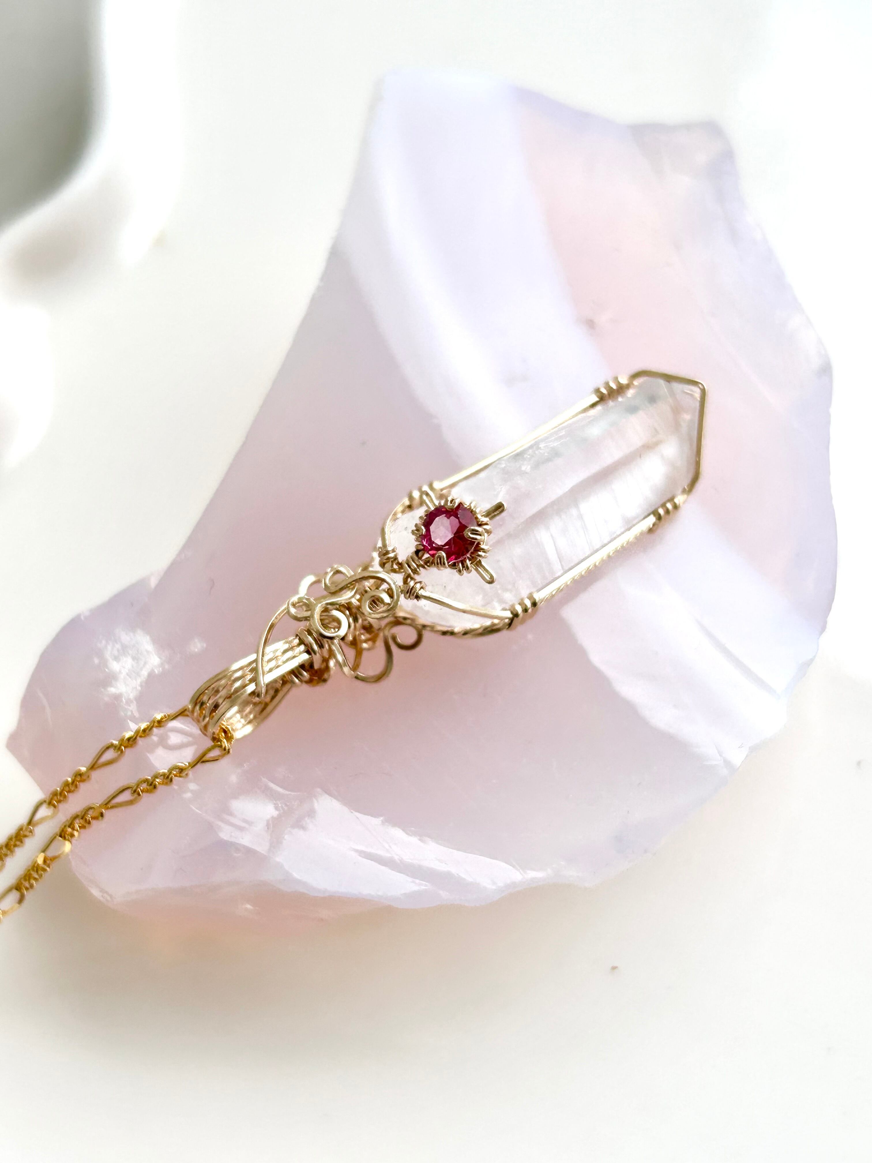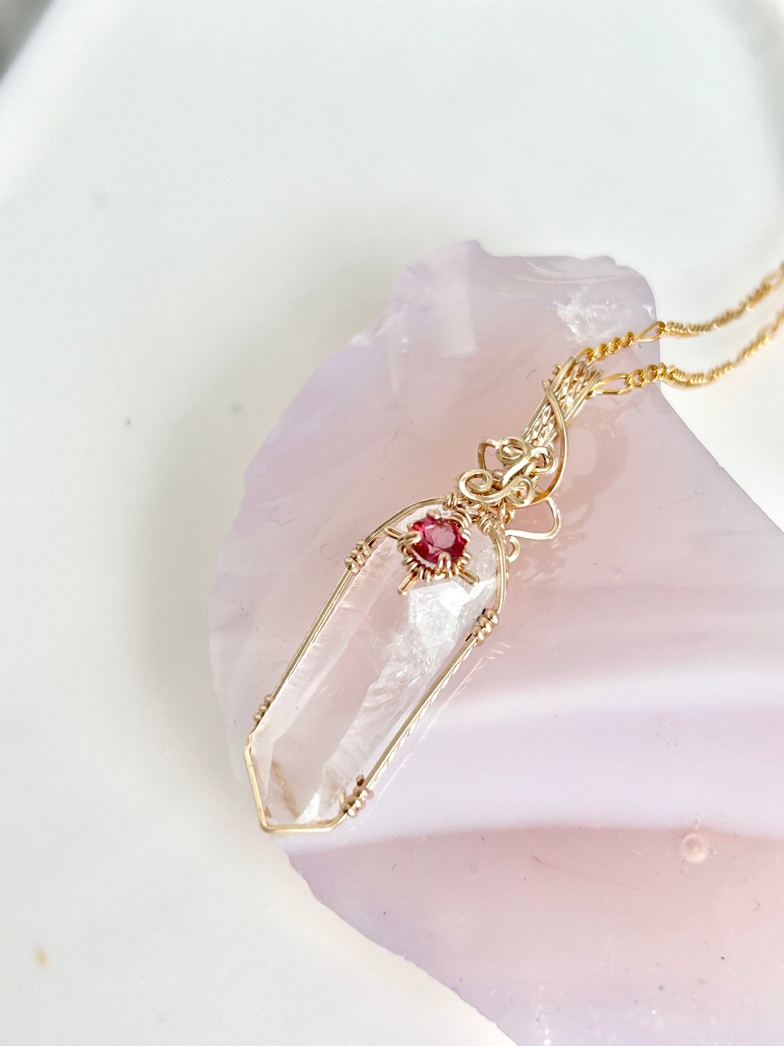 レムリアンシードクリスタル&ピンクトルマリンペンダントトップ